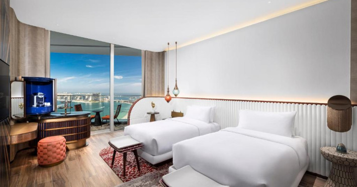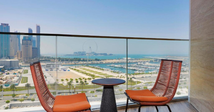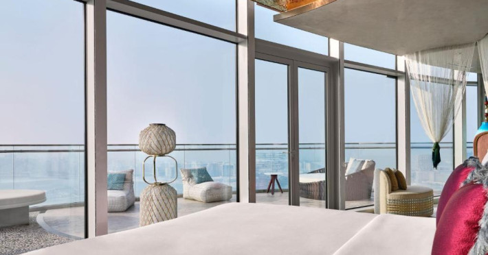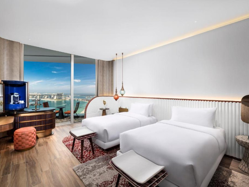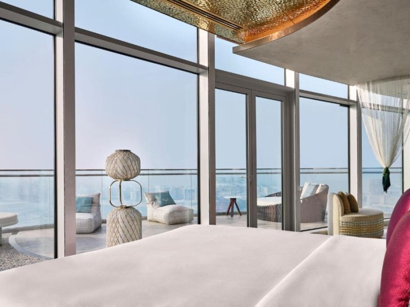 Camerele și suitele spațioase impresionează prin decorul sofisticat și priveliștile spectaculoase spre Golful Persic și Dubai Marina. Facilitățile premium includ piscină infinity cu vedere panoramică, centru spa de lux, săli de fitness ultramoderne și multiple opțiuni gastronomice rafinate.