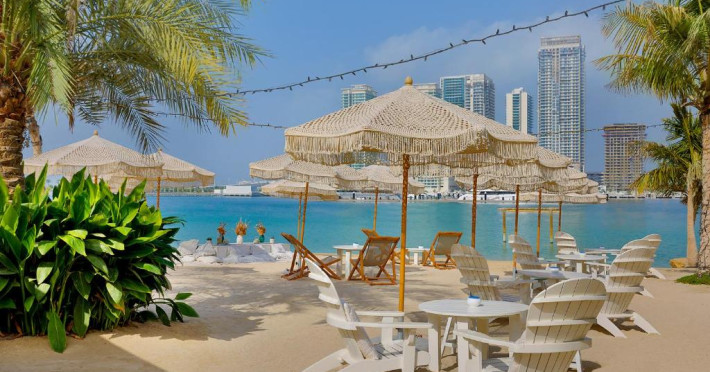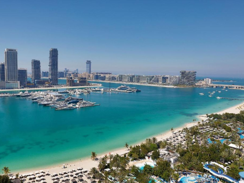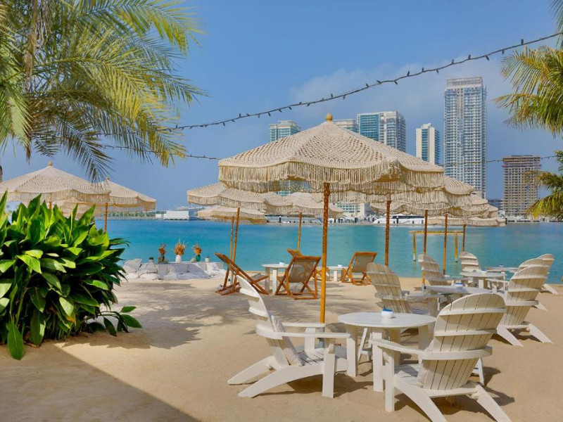 Hotelul se află pe plaja privată cu nisip fin din Mina Seyahi, unde oaspeții au acces la șezlonguri și servicii de plajă premium. Poziționarea strategică oferă acces facil către Palm Jumeirah, Dubai Marina Mall și zonele comerciale din proximitate. Pentru iubitorii sporturilor nautice, centrul de sporturi acvatice pune la dispoziție o gamă variată de activități.