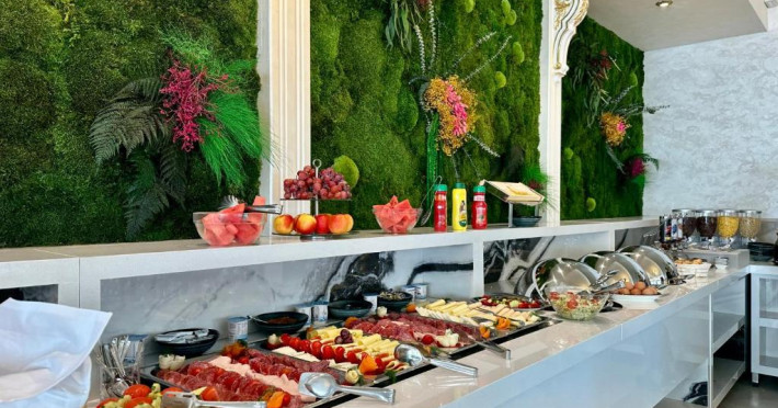 Cazarea la hotelul nostru se face cu mic dejun inclus in regim de bufet suedez cu preparate atent alese și pregătite pentru oaspeții noștrii. In restaurantul nostru „Charbel” vă puteți delecta cu o masă servită de o bucătărie profesionistă, cu specific atat romanesc, cat și internațional. De asemenea, la terasa restaurantului nostru, vă puteți bucura de o zi insorită de vară savurand cele mai rafinate băuturi alcoolice și non-alcoolice preparate la barul nostru.
