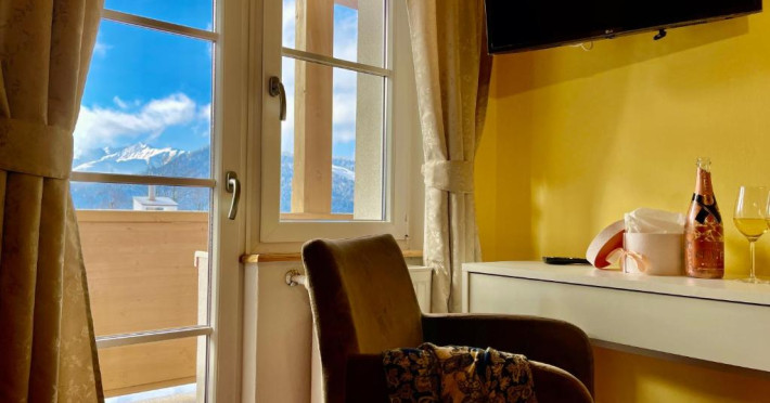 Camerele de la Waldhotel sunt mobilate in stil alpin tradițional și oferă vedere la munte, TV prin cablu și o baie cu uscător de păr.