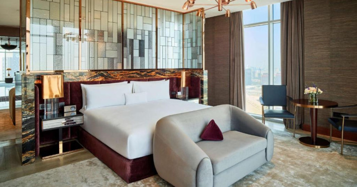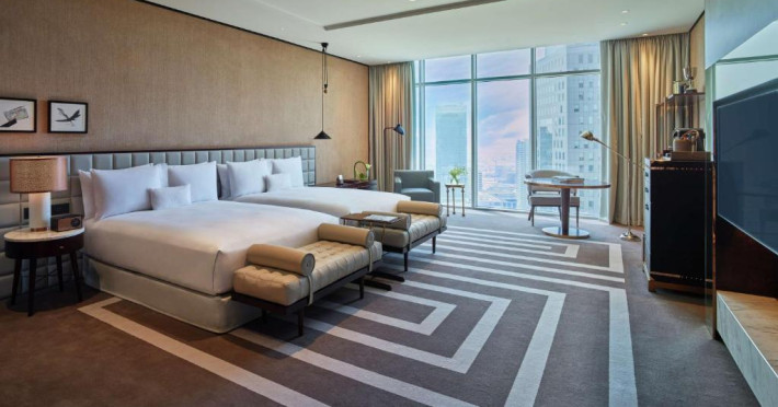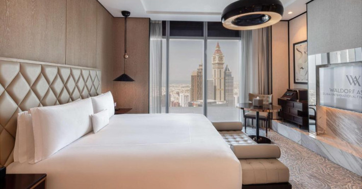Toate cele 247 de camere și suite elegant amenajate de la Waldorf Astoria DIFC oferă priveliști uluitoare, neobstrucționate, asupra orizontului Dubaiului, interioare clasice elegante, cu băi spațioase și lenjerie de pat unică Waldorf Astoria.