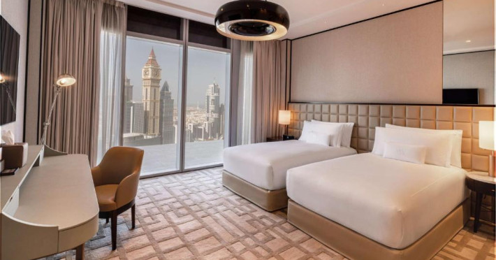 Acest hotel de 5 stele se află la doar o stație de metrou de Dubai Mall, Burj Khalifa și centrul orașului Dubai. Se mandrește cu 3 restaurante multipremiate și o piscină pe acoperiș, cu vedere la priveliștile uluitoare ale orizontului inegalabil al Dubaiului. Oaspeții se pot antrena in centrul modern de fitness sau se pot relaxa in centrul spa de ultimă generație Waldorf Astoria.