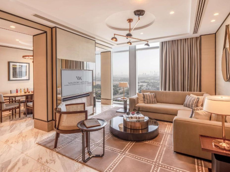 Cu clădirea DIFC Gate in imediata apropiere, Waldorf Astoria Dubai International Financial Centre este un hotel luxos care oferă un omagiu elegant adus frumuseții atemporale a Dubaiului, un stil de rafinament modern, atat conștiincios, cat și impresionant.