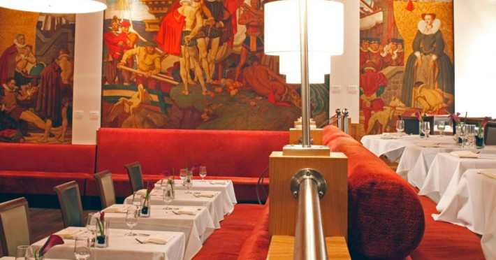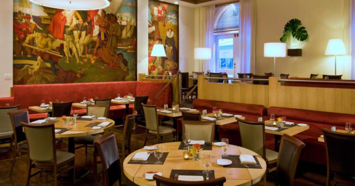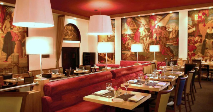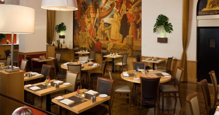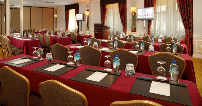 Restaurantul proprietății, Mural’s on 54th, a fost denumit după Dean Cromwell, cel care a realizat picturile murale de pe pereții restaurantului. Warwick găzduiește, de asemenea, localul Randolph’s Bar and Lounge, un restaurant american tradițional, de tip bistro.