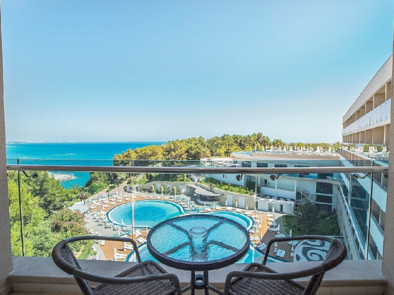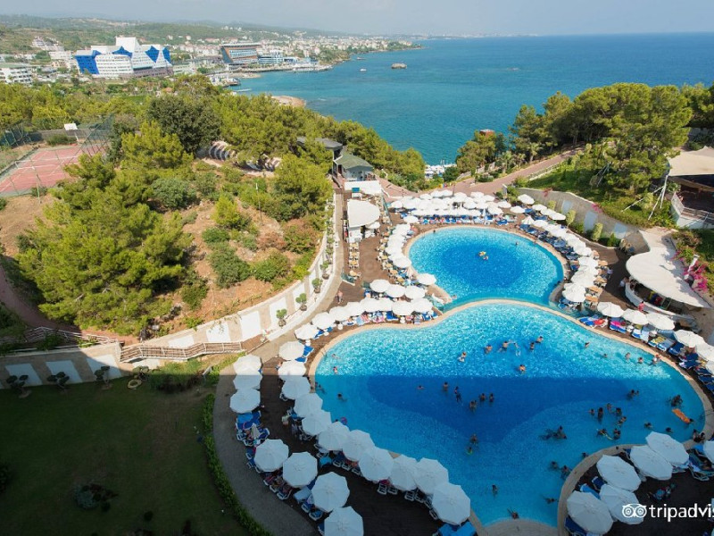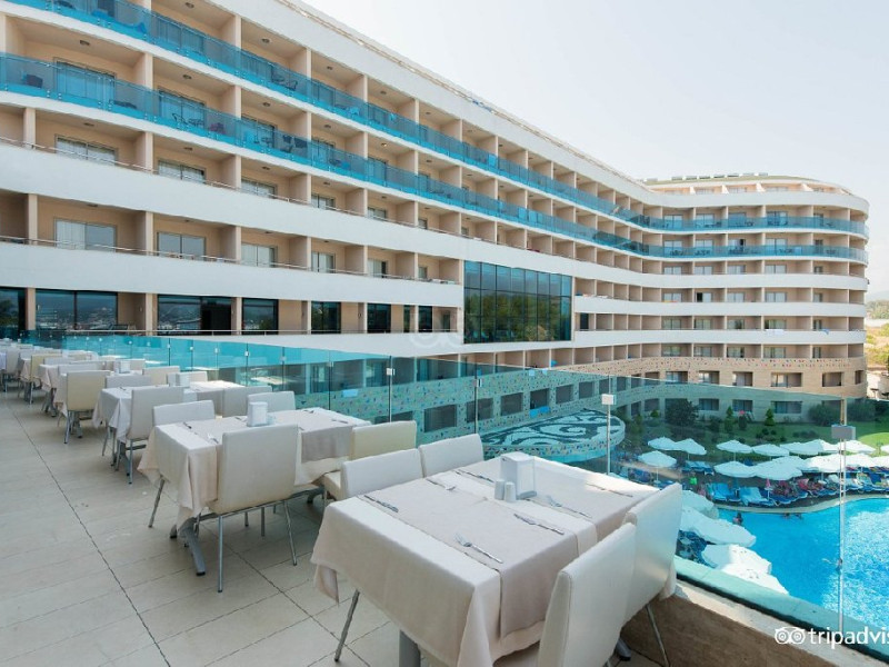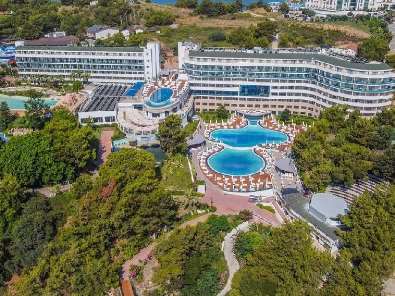 Facilitati hotel: Hotelul pune la dispozitia turistilor: terasa, Lobby Bar, Laguna Bar, Pool Bar, Beach Bar, restaurante, patiserie, zona de plaja privata cu sezlonguri si umbrele, piscine, piscina pentru copii, aquapark, rafting, debarcader, spa si centru wellness cu baie turceasca, sauna, diferite tipuri de masaj, piscina interioara, zona de relaxare, centru fitness, darts, aerobic, zumba, tenis, volei, parc de aventura, boccia, yoga, baschet, pilates.