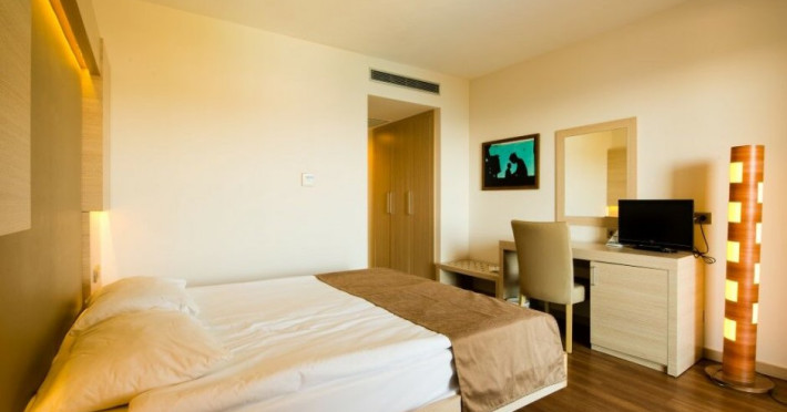 Unele camere au balcon cu vedere la mare, unde oaspeții pot admira apusul sau răsăritul soarelui. Camerele luminoase de la Water Planet Hotel & Aquapark sunt dotate cu aer condiționat și Tv cu canale prin satelit. Fiecare cameră dispune de minibar. În camere există baie cu cadă sau duș, foehn, articole de toaletă gratuite, precum și halate de baie și papuci. Oaspeții au acces gratuit la serviciul Wi-fi în camere. Curățenia in cameră se face zilnic.