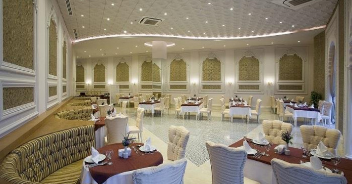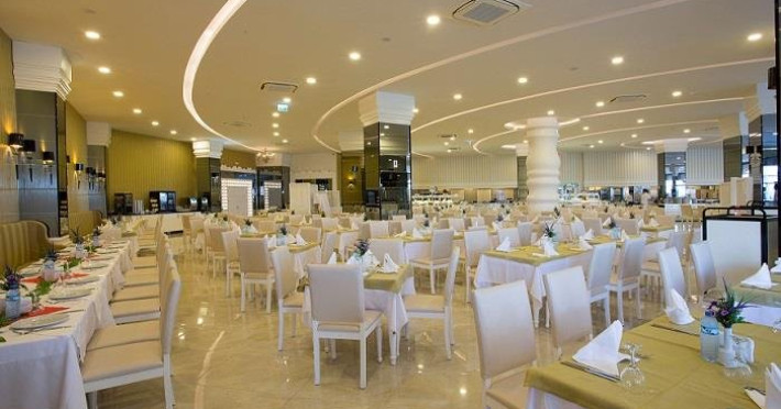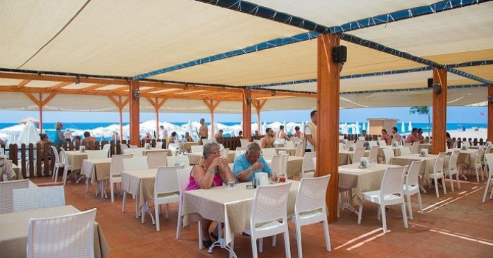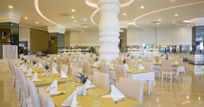 Ultra all Inclusive - tip bufet pentru micul dejun, pranz, cina, gustari dupa-amiaza, bufet si restaurant special pentru copii, restaurant pe plaja cu gustari, bere si bauturi racoritoare, toate bauturile locale si unele standard din import alcoolice si racoritoare, sucuri naturale doar la micul dejun, inghetata intre anumite ore, bar pe plaja intre orele 10.00-18.00, restaurante a la Carte cu rezervare in avans si o singura data pe sejur.