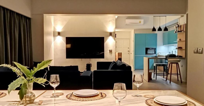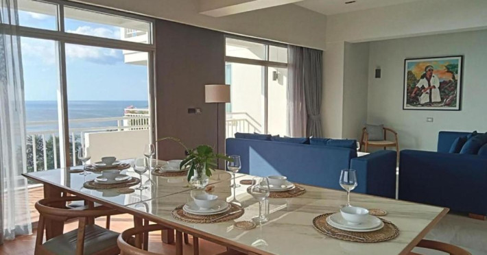 Cazare confortabilă: Apartamentele spațioase includ două dormitoare, trei băi și un living. Fiecare unitate este dotată cu aer condiționat, balcon și bucătărie complet utilată.