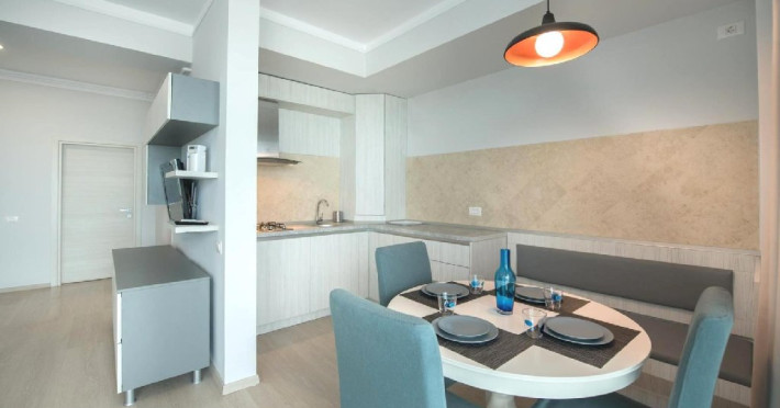 Toate apartamentele au bucatarie de tip open space, complet mobilata si utilata (frigider, plita pe gaz, cuptor cu microunde, esprssor de cafea cu cafea boabe, vesela, tacamuri).