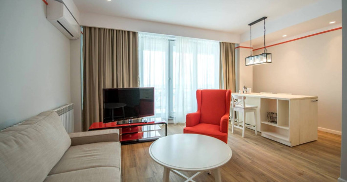 Wave 1 Promenada Apartments ofera spre inchiriere, in regim hotelier, apartamente cu vedere frontala catre mare, situate in prima linie la Promenada. Apartamentele sunt compuse din 2 camere si sunt ideale pentru cazarea a maximum 4 persoane: - living, dotat cu canapea extensibila, TV led de 100 cm, aer conditionat - dormitor, dotat cu pat matrimonial si TV led de 80 cm - bucatarie open space, complet mobilata si utilata (plita pe gaz, frigider, cuptor cu microunde, espressor de cafea) - baie cu cabina de dus - balcon cu vedere frontala la mare/ plaja - centrala proprie pe gaz Etajele superioare sunt deservite de lift. Accesul WiFi este gratuit. Wave 1 Promenada Apartments ofera unitati de cazare in Mamaia Nord, zona Kazeboo. Aceasta proprietate este la 1 minut pe jos fata de plaja (5 m). Statiunea Mamaia este la 4 km. Constanta este la 17 km de Wave 1 Promenada Apartments, iar Neptun este la 60 km. Cel mai apropiat aeroport este Aeroportul International Mihail Kogalniceanu, situat la 28 km de Wave 1 Promenada Apartments. Va asteptam cu soare si mare linistita!Datorita dinamicitatii domeniului disponibilitatea ofertelor se modifica de la un moment la altul. De aceea ofertele sunt valabile in limita locurilor disponibile. Agentia nu este responsabila pentru eventualele neconcordante care pot aparea intre informatiile privind tarifele si alte detalii din site si informatiile primite in agentie. In aceste cazuri vor avea prioritate, intotdeauna, informatiile primite in agentie.