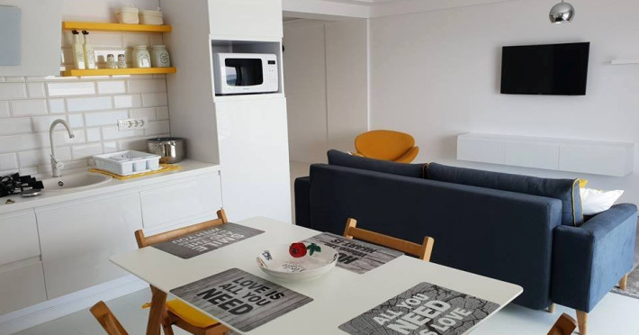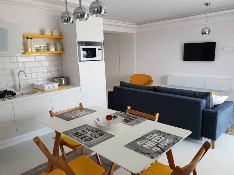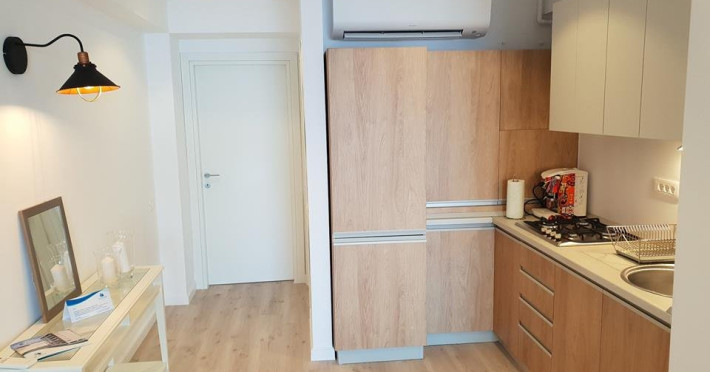 Toate apartamentele au bucatarie de tip open space, complet mobilata si utilata (frigider, plita pe gaz, cuptor cu microunde, cuptor electric, espressor de cafea cu cafea boabe, vesela, tacamuri).