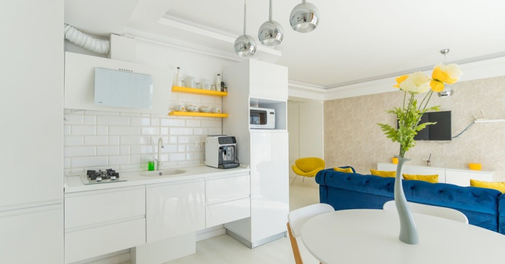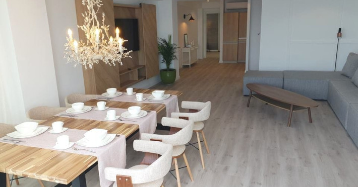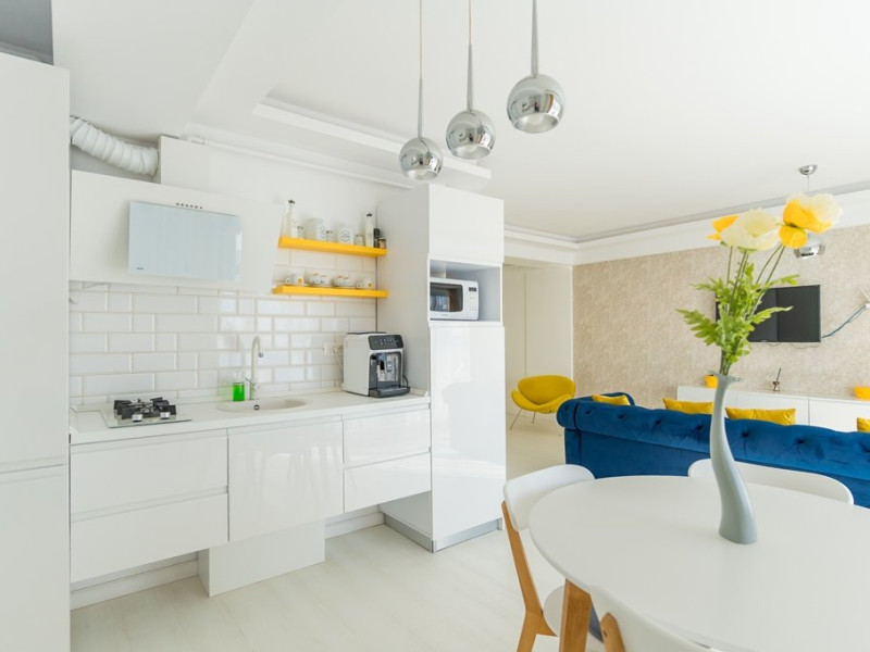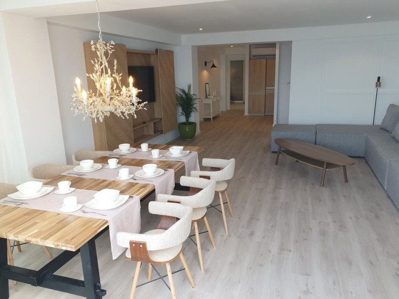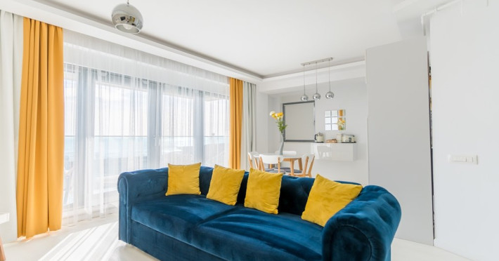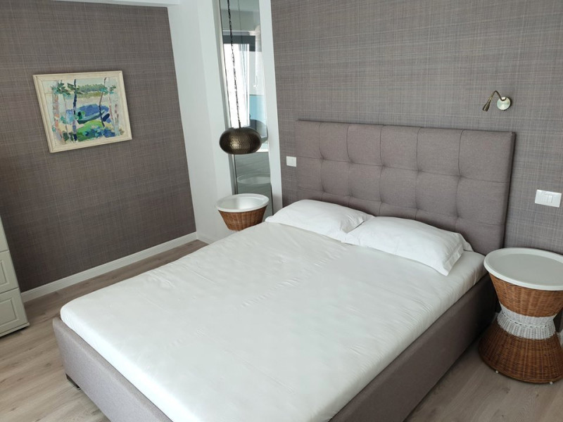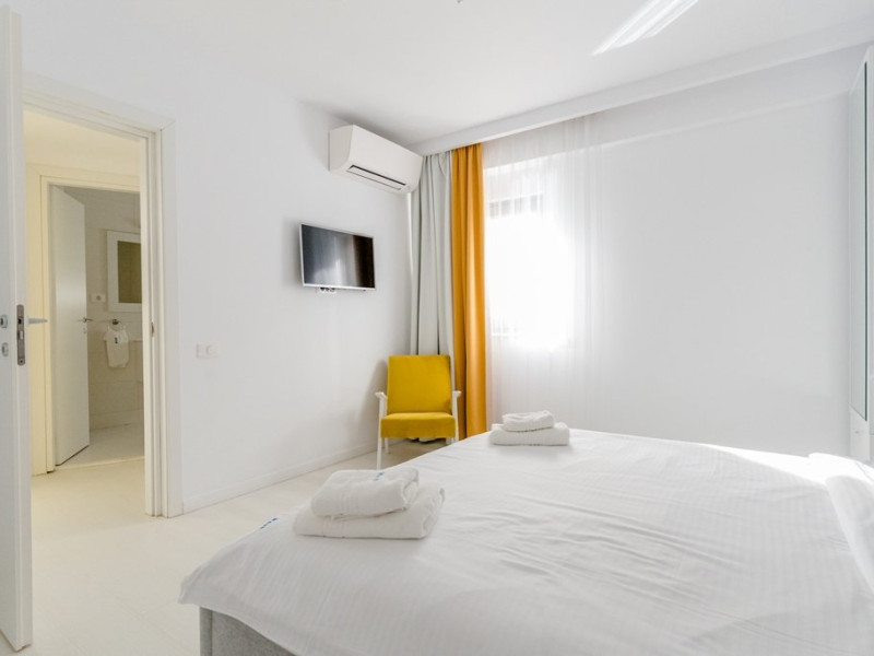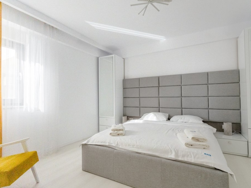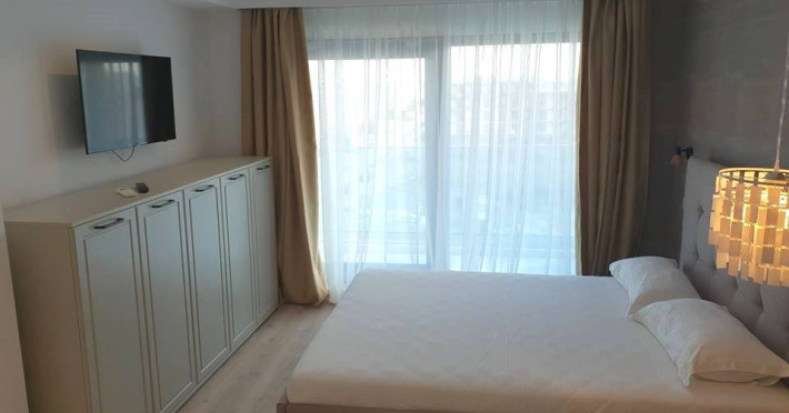 Apartamentul cu 2 camere este compus din dormitor cu pat matrimonial si living cu canapea extensibila), bucatarie de tip open space, complet mobilata si utilata (frigider, plita pe gaz, cuptor cu microunde, esprssor de cafea cu cafea boabe, vesela, tacamuri), aer conditionat, TV, Internet, suport uscator de rufe, masa de calcat si fier de calcat, uscator de par, mobilier pe balcoane/ terase.