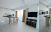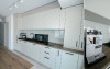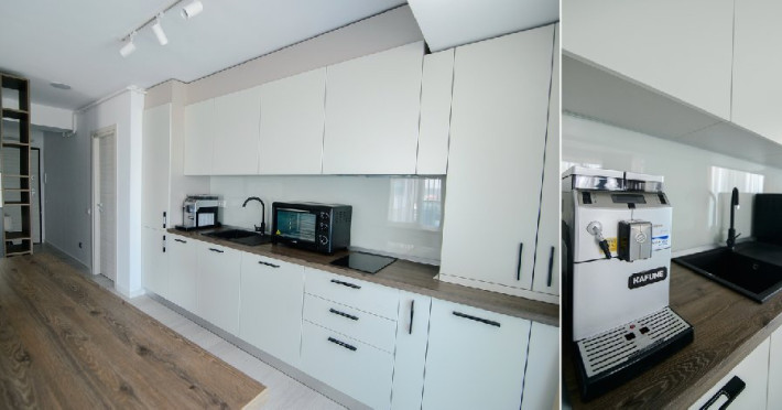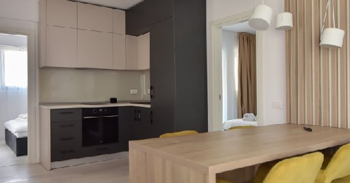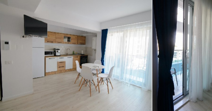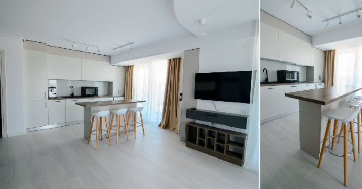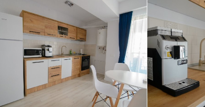 Toate apartamentele au bucatarie de tip open space, complet mobilata si utilata (frigider, plita pe gaz sau cu inductie, cuptor cu microunde, esprssor de cafea cu cafea boabe, vesela, tacamuri).