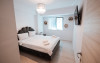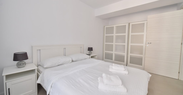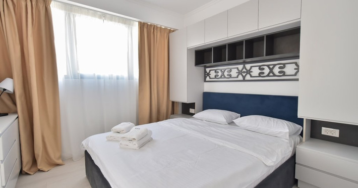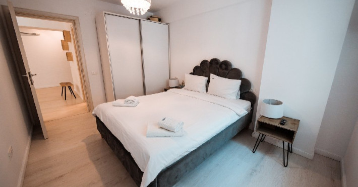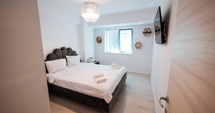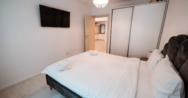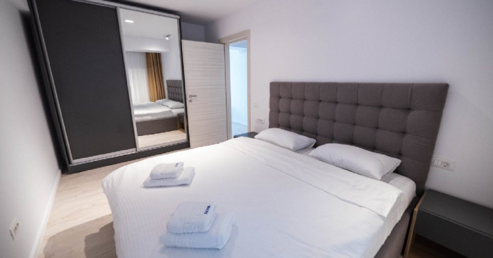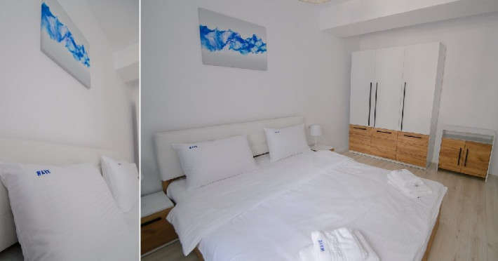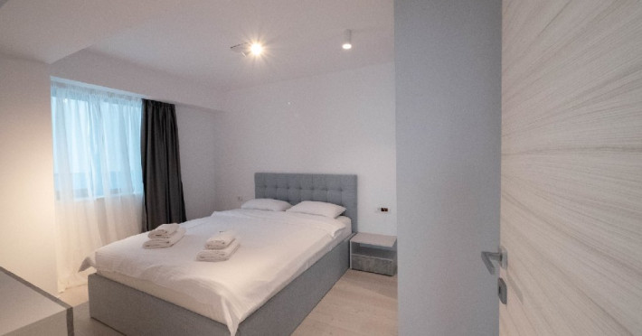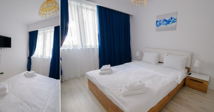 Apartamentul are 3 camere (2 dormitoare cu pat matrimonial si living cu canapea extensibila).