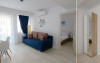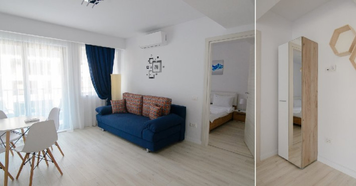 Apartamentul are 2 camere (dormitor cu pat matrimonial si living cu canapea extensibila).