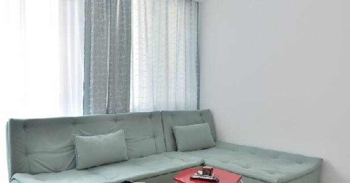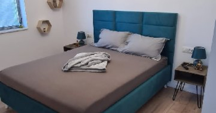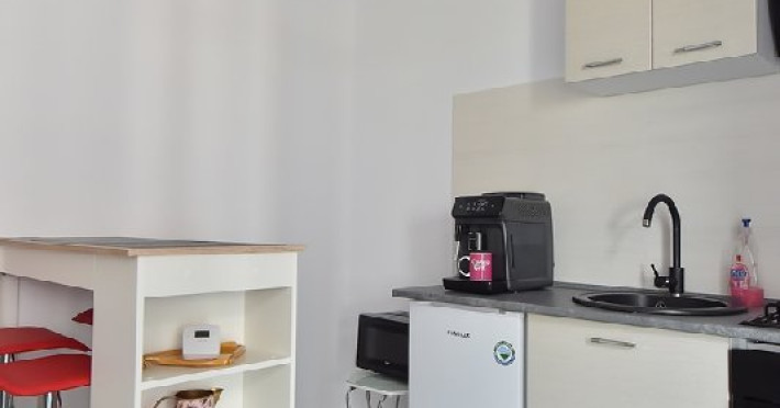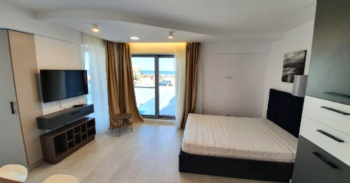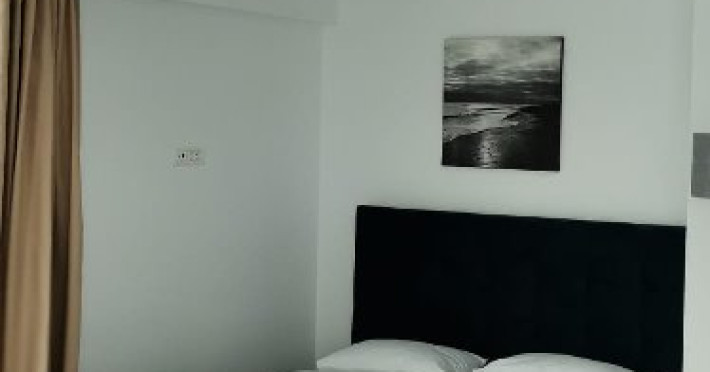 Garsoniera are o singura incapere spatioasa, cu un pat matrimonial si bucatarie open space.