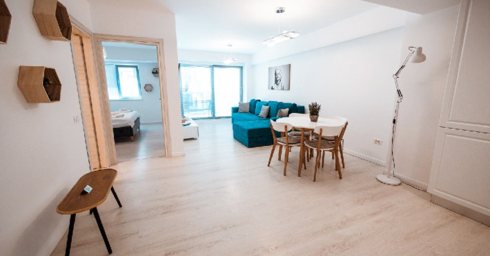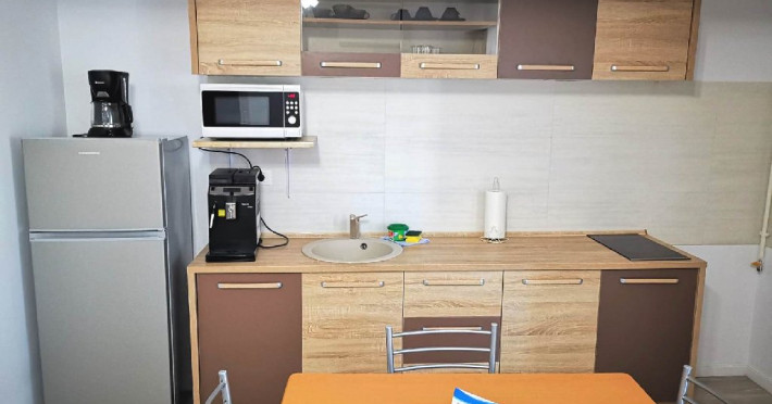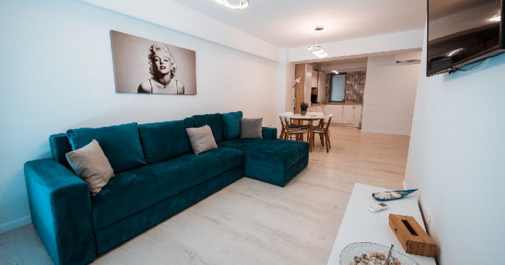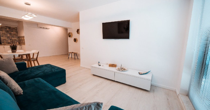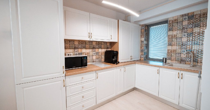 Dotari si facilitati: bucatarie de tip open space, complet mobilata si utilata (frigider, plita cu inductie, cuptor cu microunde, cuptor electric, esprssor de cafea cu cafea boabe, vesela, tacamuri).