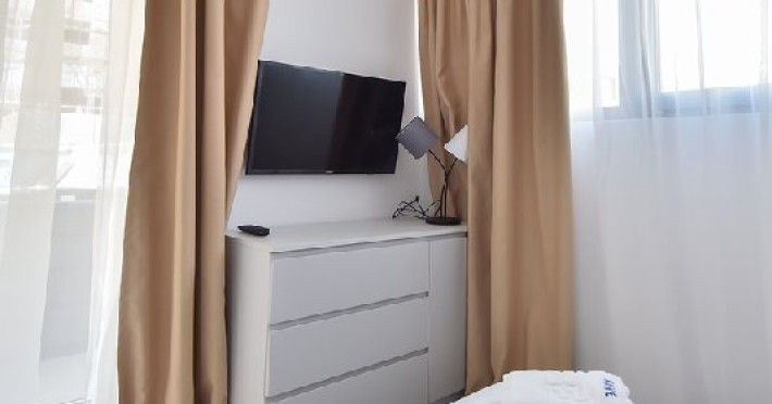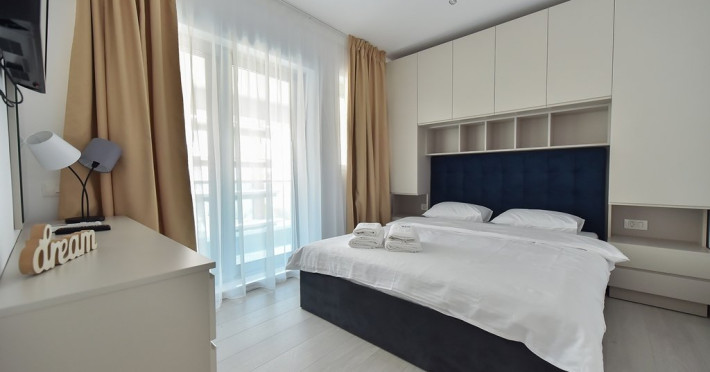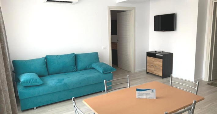 Toate apartamentele au aer conditionat, TV LED cu conexiune cablu TV, acces Internet Wi-Fi gratuit, suport uscator de rufe, masa de calcat si fier de calcat, uscator de par, mobilier pe balcoane/ terase.