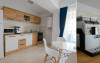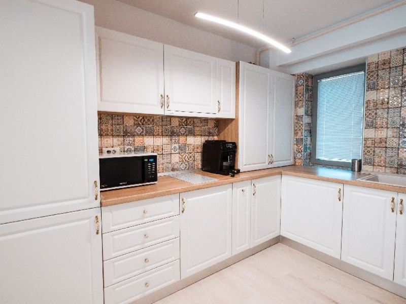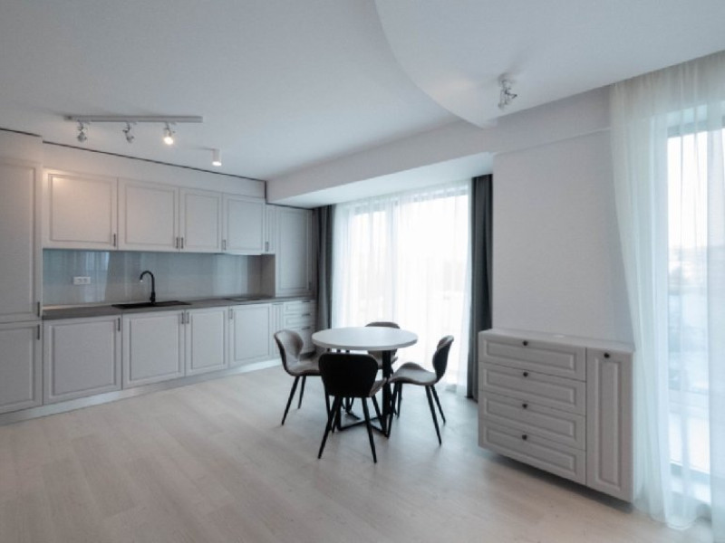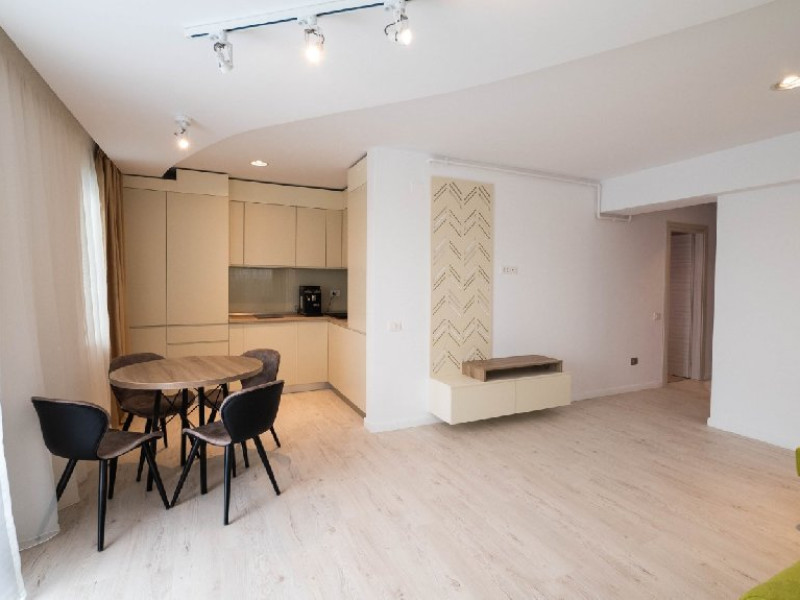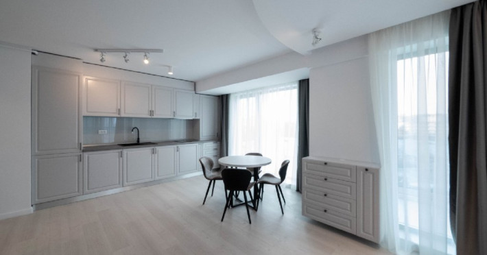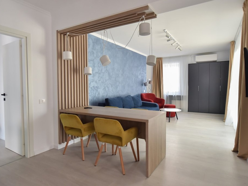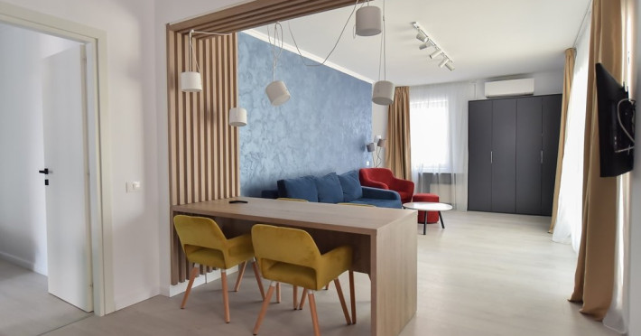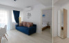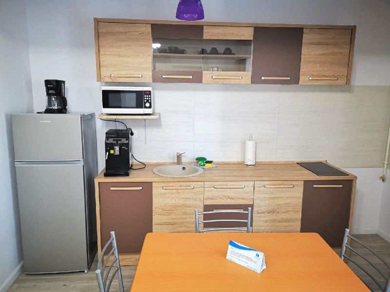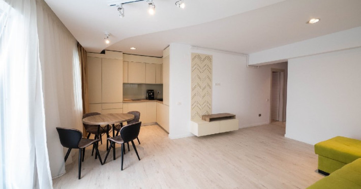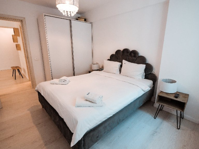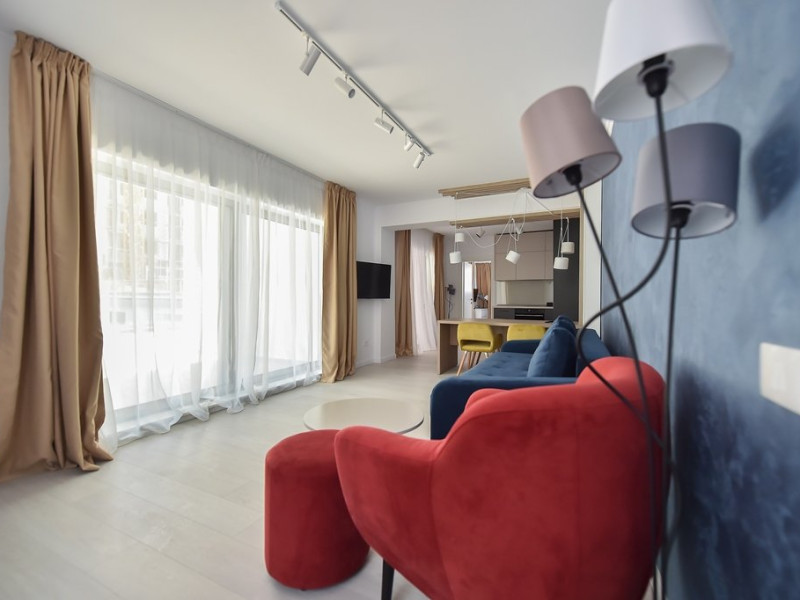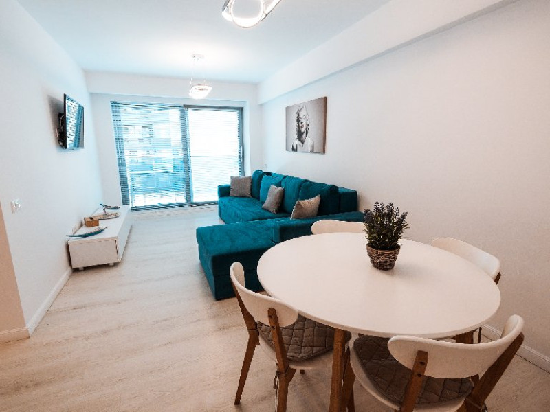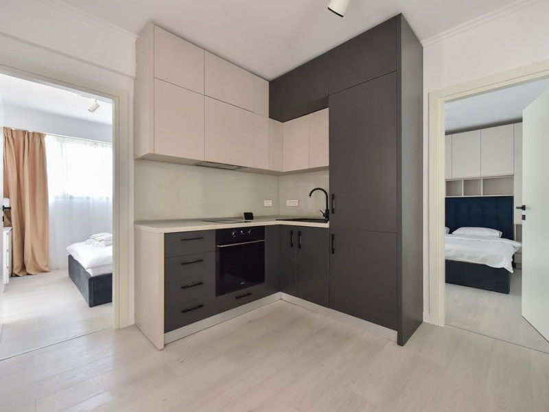 Dotari camere: bucatarie de tip open space, complet mobilata si utilata (frigider, plita pe gaz sau cu inductie, cuptor cu microunde, espressor de cafea cu cafea boabe, vesela, tacamuri), aer conditionat, TV LED cu conexiune cablu TV, acces Internet Wi-Fi gratuit, suport uscator de rufe, masa de calcat si fier de calcat, uscator de par, mobilier pe balcoane/ terase.