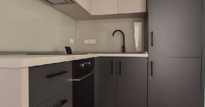 Garsoniera are o singura incapere spatioasa, cu un pat matrimonial si bucatarie open space.