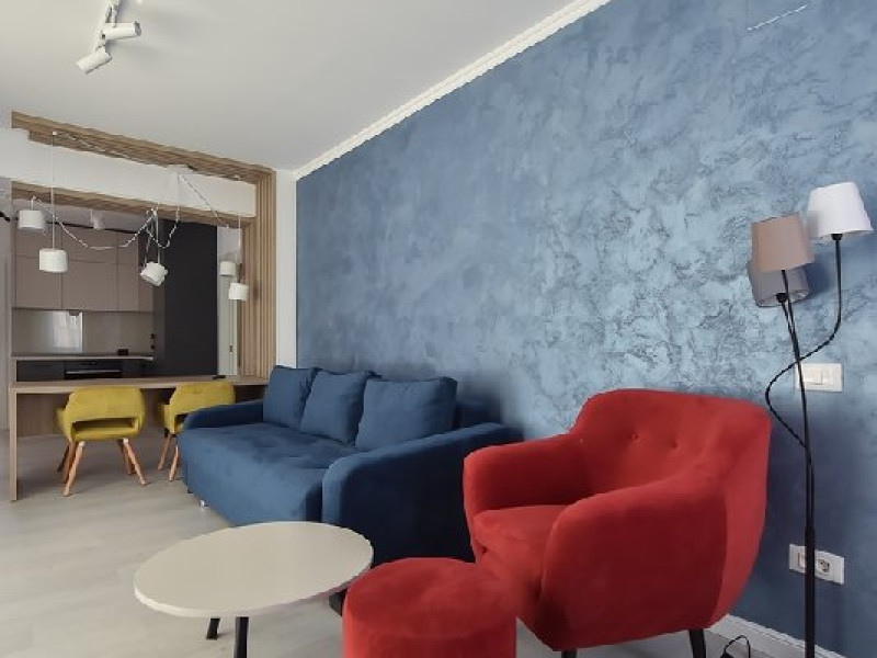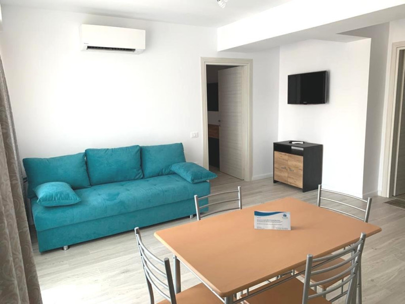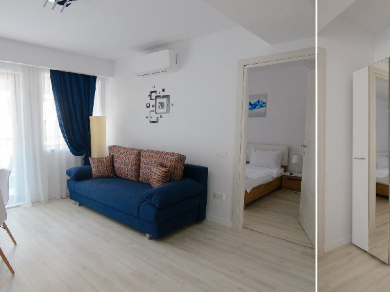 Apartamentul are 2 camere: dormitor cu pat matrimonial si living cu canapea extensibila.