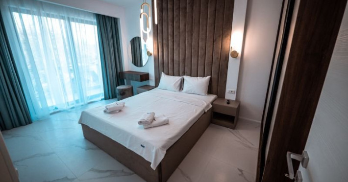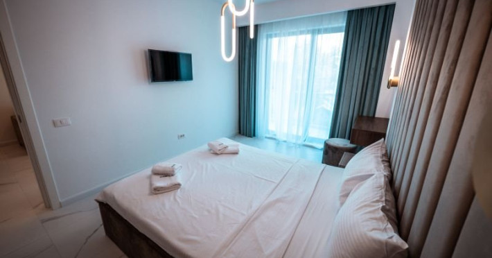 Wave 4 penthouse (801, 802, 803, 901, 902) - vedere laterala la mare: Apartamentul are 3 camere (2 dormitoare cu pat matrimonial si living cu canapea extensibila). Capacitate maxima 6 persoane.