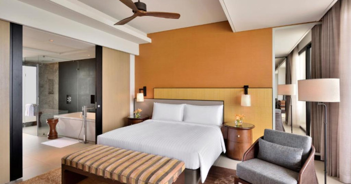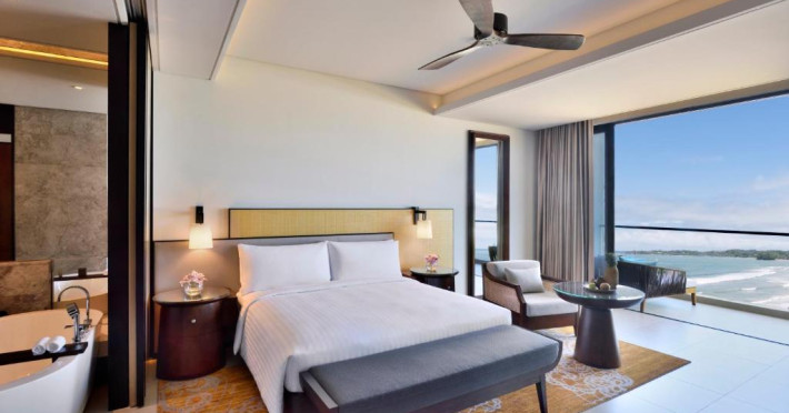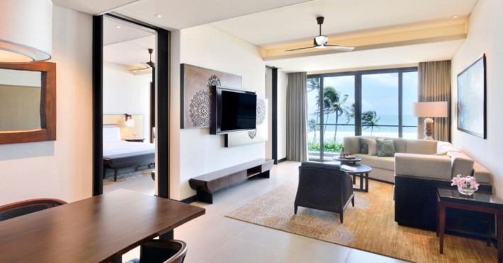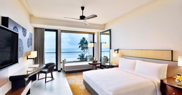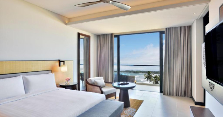 Weligama Bay Marriott Resort & Spa se află pe plajă si pune la dispoziție unităti de cazare, o piscină pentru copii disponibilă pe tot parcursul anului, o piscină de relaxare, precum și o piscină lungă si ingustă, situată in aer liber. De asemenea, complexul oferă facilități de sporturi acvatice și este situat in imediata vecinătate a Fortului Galle și a punctelor de observație a balenelor albastre. Oaspeții au la dispoziție minibar, facilități de călcat, baie cu o cadă si o grădină cu mobilier de exterior.