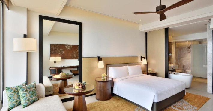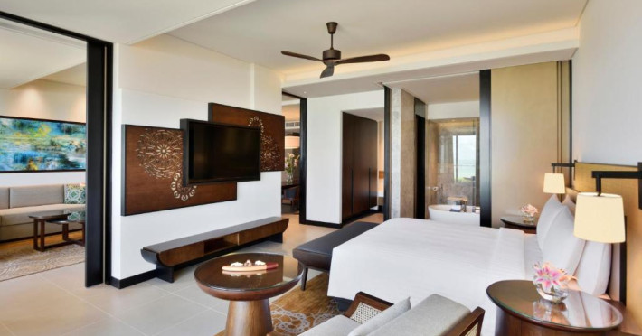 Toate camerele au TV Smart cu ecran LED de 55 inch si canale prin satelit, cadă și balcon cu vedere directă la Oceanul Indian. Unitătile de cazare includ, de asemenea, un pat de zi. Baia proprie este dotată cu cadă, halate de baie, papuci și articole de toaletă gratuite. Suitele includ si o zonă de luat masa.