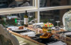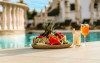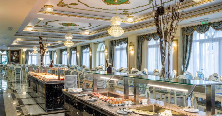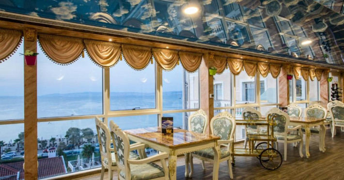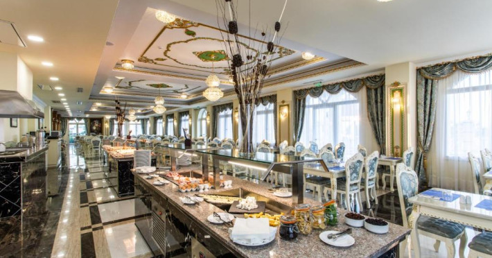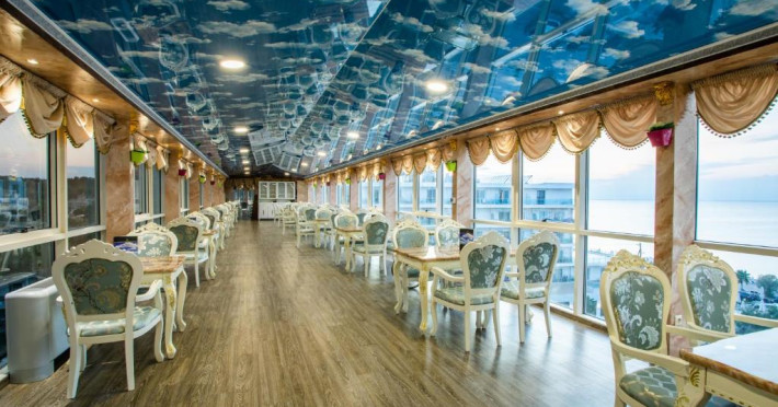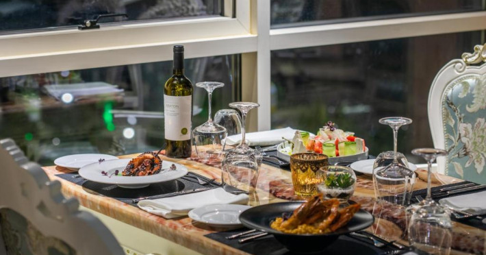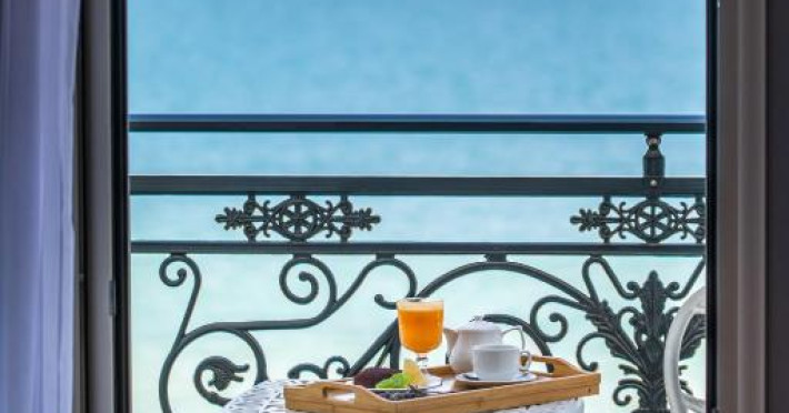Oaspeții iși pot incepe ziua cu un mic dejun tip bufet servit zilnic in zona de luat masa. Bucătăria mediteraneană și mancăruri grecești pot fi savurate la restaurantul hotelului, care oferă vedere la mare.