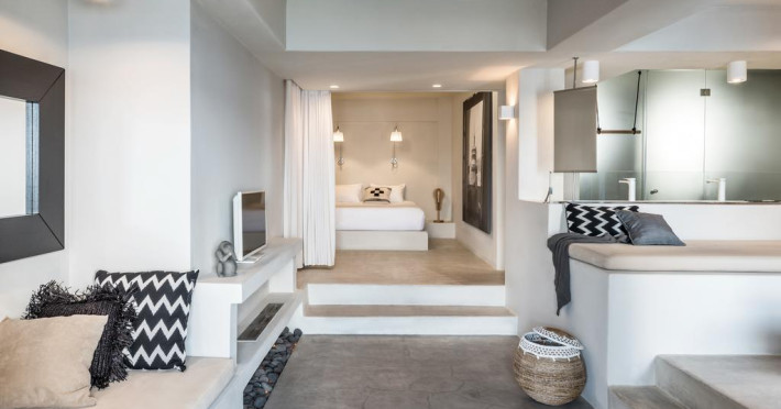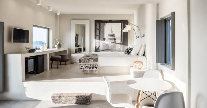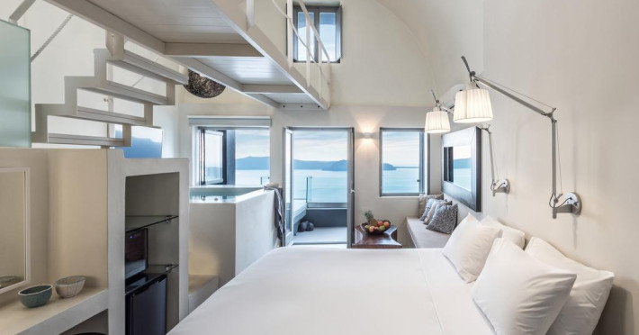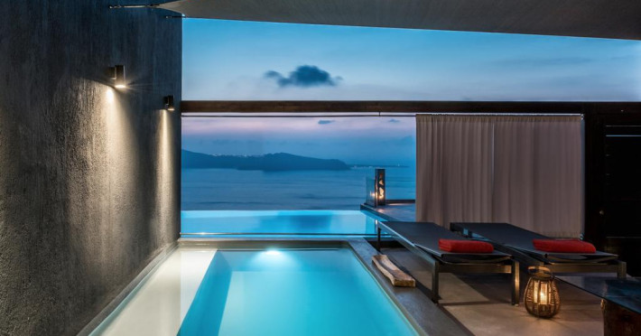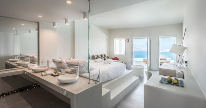 West East Suites este o proprietate de 5 stele situată în Imerovigli (Santorini), care oferă piscină în aer liber, terasă cu șezlonguri și umbrele, precum și facilități spa. Proprietatea are servicii de recepție cu program non - stop, concierge și închirieri auto. Se oferă acces gratuit la internet Wi-fi în spațiile publice. Parcarea este disponibilă la proprietate gratuit.