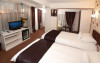 Fiecare dintre camerele cu aer conditionat de la West Plaza Hotel este echipată cu TV cu ecran plat și canale prin satelit si cu baie elegantă, cu marmură și dus. Toate camerele au ferestre din podea pană in tavan, iar unele camere oferă in plus ferestre mari, panoramice si balcon privat.