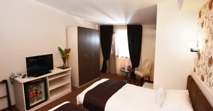 Hotel characteristics: ; 11 rooms Location: A very nice place to stay for a reasonable price - hotel «West Plaza Residence» is located in Bucharest. This hotel is located in 5 km from the city center. You can take a walk and explore the neighbourhood area of the hotel. Places nearby: Lujerului, Palace of the Parliament and Antim Monastery At the hotel: Spend an evening in a nice atmosphere of the bar. Itâs time to have a nice meal! Stop by the restaurant. Free Wi-Fi on the territory will help you to stay on-line. If you travel by car, you can park in a parking zone for free; Also, the following services are available for guests at the hotel: a massage room. For business meetings, there is a business center. You can take your pet with you for the journey. Pets are allowed. For the free movement around the city, the hotel offers a transfer for you; There are other services available for the guests of the hotel. For example, a laundry, dry cleaning, private check-in and check-out, ironing, car rental and a safe-deposit box. The staff of the hotel speaks English Room amenities: In the room, there is a shower and a TV. The room equipment depends on its categoryDatorita dinamicitatii domeniului disponibilitatea ofertelor se modifica de la un moment la altul. De aceea ofertele sunt valabile in limita locurilor disponibile. Agentia nu este responsabila pentru eventualele neconcordante care pot aparea intre informatiile privind tarifele si alte detalii din site si informatiile primite in agentie. In aceste cazuri vor avea prioritate, intotdeauna, informatiile primite in agentie.