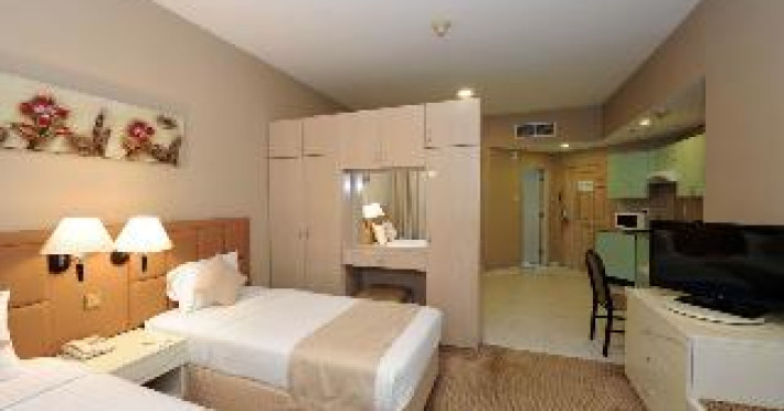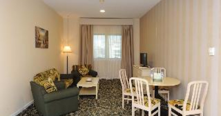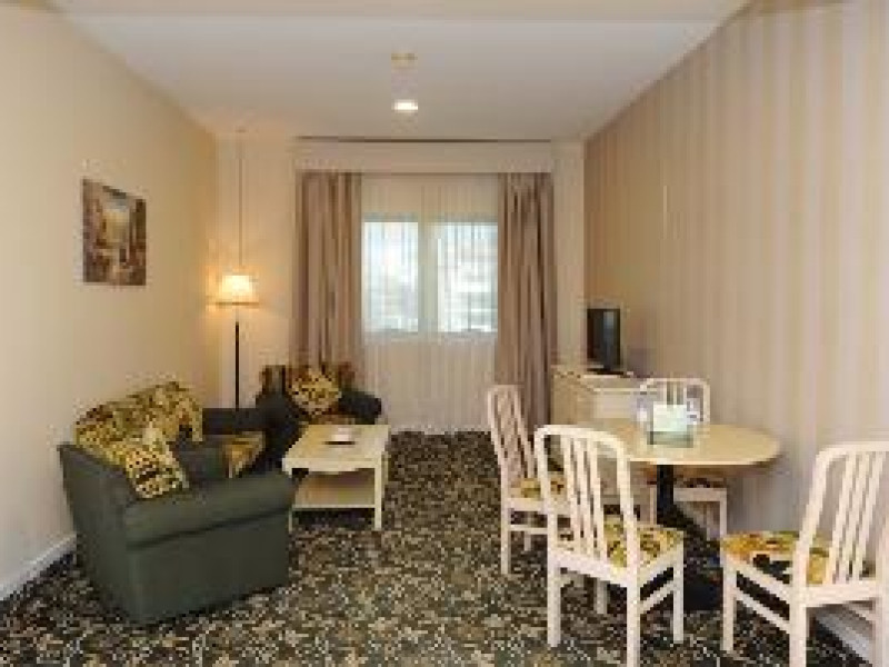 The hotel boasts a convenient location in Dubai's Bur Dubai district, placing guests near numerous commercial and shopping centers. Ideal for both leisure and business travelers, it's a short walk from the metro station and a 20-minute drive from Dubai International Airport and a public beach. Downtown Dubai, Sheikh Zayed Road, and the Burj Khalifa are just a 10-minute drive away. Following recent renovations, the hotel's 84 well-equipped studios and one-bedroom apartments offer a comfortable and relaxing stay. Each unit is tastefully decorated and features modern amenities. Guests can enjoy the rooftop swimming pool and sundeck, or stay active in the gym, complete with saunas and hot tubs.The hotel boasts a convenient location in Dubai's Bur Dubai district, placing guests near numerous commercial and shopping centers. Ideal for both leisure and business travelers, it's a short walk from the metro station and a 20-minute drive from Dubai International Airport and a public beach. Downtown Dubai, Sheikh Zayed Road, and the Burj Khalifa are just a 10-minute drive away. Following recent renovations, the hotel's 84 well-equipped studios and one-bedroom apartments offer a comfortable and relaxing stay. Each unit is tastefully decorated and features modern amenities. Guests can enjoy the rooftop swimming pool and sundeck, or stay active in the gym, complete with saunas and hot tubs.