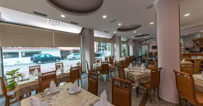 The hotel WESTERN STAR is located approximately 50 m from a sandy beach. The nearest bars and restaurants are located directly next to the building. The old town is around 15 km away. A supermarket and other shops you reach after around 150 m. On the beach are cushions available. The seasonally air-conditioned hotel has a 24h reception (check-in is possible around the clock), Wi-Fi, internet access, a first aid kit, parking spaces (limited) as well as a TV lounge with satellite TV. Your valuables can be stored in the hotel safe. In addition, the hotel WESTERN STAR is video-monitored 24h a day. For the young hotel guests there is a playground. For very young guests, cots can also be provided. For your comfort there is a concierge service. The energy supply is 220, 230 and 240 Volts. In your hotel, a lot of focus is placed on sustainability. This includes waste segregation in the rooms, the hotel`s own recycling bins, the provision of soap, shampoo and lotion dispensers, organic food and ecological meals, a central room air-conditioning and environmentally-friendly cleaning. Euro/Master Card and Visa are accepted as means of payment. Catering As catering services the hotel offers breakfast only. Breakfast is offered continental or from the buffet. Appropriate clothing is required for lunch and dinner. Distances