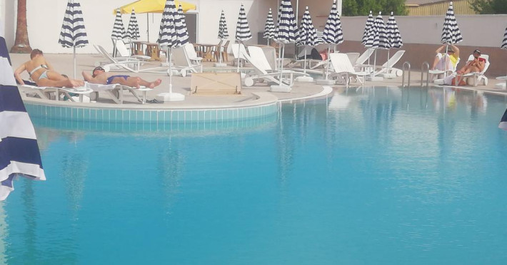 Copiii se pot distra la piscina special amenajată, prevăzută cu tobogane cu apă.
