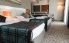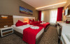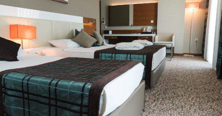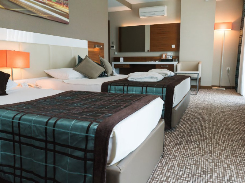 Dotari camere: Camerele hotelului au suprafata intre 27 mp si 55 mp, in functie de tipul de camera. Dispun de baie cu dus, TV, internet wi-fi, seif, minibar, aer conditionat.