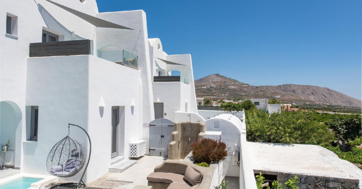 White Harmony Luxury Suites is the ultimate destination of relaxation in Santorini! In a traditional settlement of the island, Megalochori, 4 brand new suites offer luxury and comfortable accommodation in nature.They have been created with utmost respect to the environment, following the traditional Theran architecture with modern touches of supreme aesthetics. Bright colors are prevalent in decor, reflecting natural light bathing their interior. Two of them come with exterior Jacuzzi, while the rest have access to a private swimming pool. The luxurious amenities and the cordial services create the idyllic atmosphere and ensure the optimal holiday experience for you. Their privileged location enables guests to have easy and smooth access to the island’s attractions, as well as Fira Town. At the same time, it offers unique moments of privacy and serenity. The view is magical, completing the ideal scenery for your vacations. Discover the magic of Santorini with its breathtaking sunset and emblematic caldera, choosing White Harmony Luxury Suites at Megalochori. Let us introduce you to unpretentious luxury, splendidly combined with the island’s natural beauty and its unique character. We are looking forward to welcoming you!White Harmony Luxury Suites is the ultimate destination of relaxation in Santorini! In a traditional settlement of the island, Megalochori, 4 brand new suites offer luxury and comfortable accommodation in nature.They have been created with utmost respect to the environment, following the traditional Theran architecture with modern touches of supreme aesthetics. Bright colors are prevalent in decor, reflecting natural light bathing their interior. Two of them come with exterior Jacuzzi, while the rest have access to a private swimming pool. The luxurious amenities and the cordial services create the idyllic atmosphere and ensure the optimal holiday experience for you. Their privileged location enables guests to have easy and smooth access to the island’s attractions, as well as Fira Town. At the same time, it offers unique moments of privacy and serenity. The view is magical, completing the ideal scenery for your vacations. Discover the magic of Santorini with its breathtaking sunset and emblematic caldera, choosing White Harmony Luxury Suites at Megalochori. Let us introduce you to unpretentious luxury, splendidly combined with the island’s natural beauty and its unique character. We are looking forward to welcoming you!