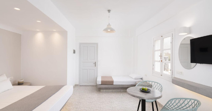 White Lily offers whitewashed rooms, studios and apartments with a central swimming pool equipped with sunbeds and umbrellas. Fully renovated and air-conditioned they feature built-in traditional cycladic beds, flat screen TV, mini-fridge, Nespresso Machine and Daily Maid Service. They are all equipped with spacious bathrooms with walk-in shower fitted with rain showerhead. White Lily is an adults only property (16+ years old). Our guests are offered free use of umbrellas and sunbeds at our sister 4 Star Sea View Beach Hotel on Perivolos beach (9 minutes walk from White Lily) while they can enjoy a la carte breakfast, lunch or dinner choices at our Sea View Restaurant-Bar.White Lily offers whitewashed rooms, studios and apartments with a central swimming pool equipped with sunbeds and umbrellas. Fully renovated and air-conditioned they feature built-in traditional cycladic beds, flat screen TV, mini-fridge, Nespresso Machine and Daily Maid Service. They are all equipped with spacious bathrooms with walk-in shower fitted with rain showerhead. White Lily is an adults only property (16+ years old). Our guests are offered free use of umbrellas and sunbeds at our sister 4 Star Sea View Beach Hotel on Perivolos beach (9 minutes walk from White Lily) while they can enjoy a la carte breakfast, lunch or dinner choices at our Sea View Restaurant-Bar.