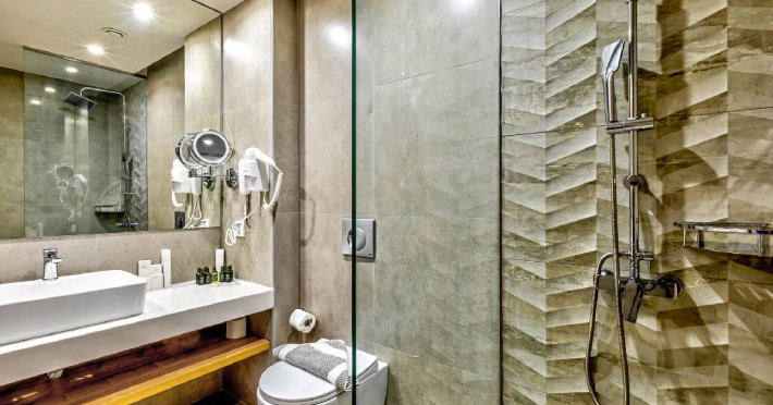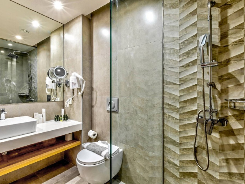 - Dotari in camera: baie (dus, uscator de par, articole cosmetice), aer conditionat, TV-sat, telefon, ceainic electric, seif, frigider