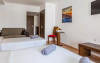 White Olive Premium are în apropiere o plajă cu nisip. Pe plajă există șezlonguri și umbrele de plajă.