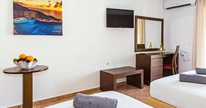 Cel mai apropiat aeroport este Aeroportul Internaţional Dionysios Solomos Zakynthos, situat la o distanță de 2,9 km. La cerere proprietatea organizează transfer la/de la aeroport contra cost.