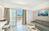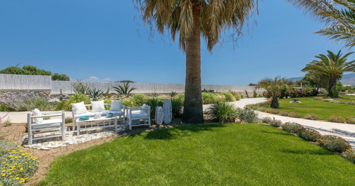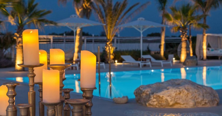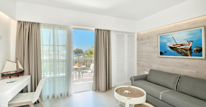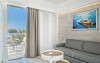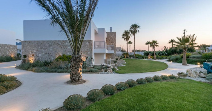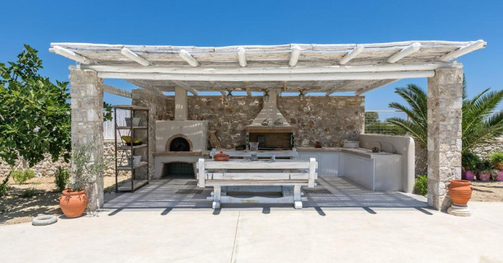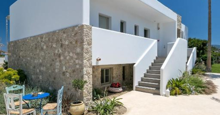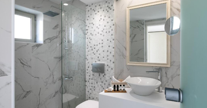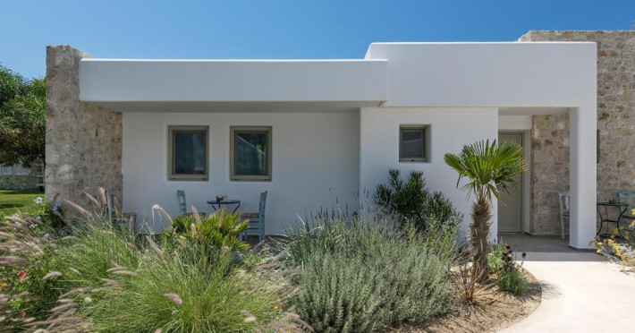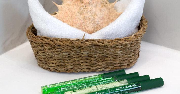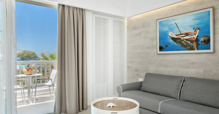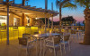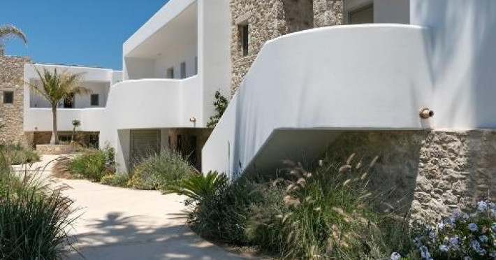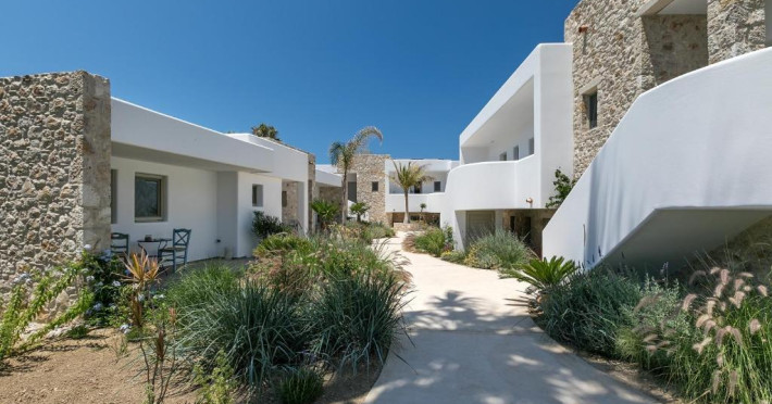 Restaurantul à la carte Aerides servește preparate tradiționale grecești. Oaspeții se pot bucura de cocktailuri la barul elegant in timp ce admiră apusul de soare de la Marea Egee.