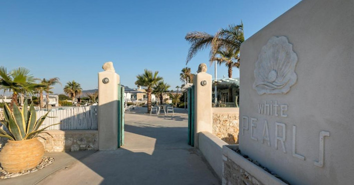 Fiecare suită de la White Pearls - Adults Only are un design modern și este decorată cu lenjerie fină și opere de artă atent selectate. Unele suite au o cadă cu hidromasaj privată. Fiecare este dotată cu un living, in timp ce altele se deschid spre un balcon sau o terasă. Anumite suite se bucură de o vedere magnifică la Marea Egee.