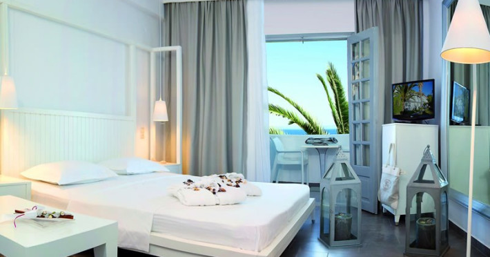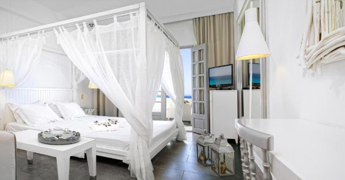 Sunt disponibile 14 camere. Camerele de la White Suites sunt dotate cu aer condiționat, Tv cu canale prin satelit și seif. În camere există baie cu duș prevăzută cu foehn. Unele camere au balcon cu vedere la mare, unde oaspeții pot admira apusul sau răsăritul soarelui. Fiecare cameră dispune de minibar. Oaspeții pot solicita serviciul de room service pentru a servi masa sau diverse băuturi. Oaspeții au acces gratuit la serviciul Wi-fi în camere. Curățenia in cameră se face zilnic.