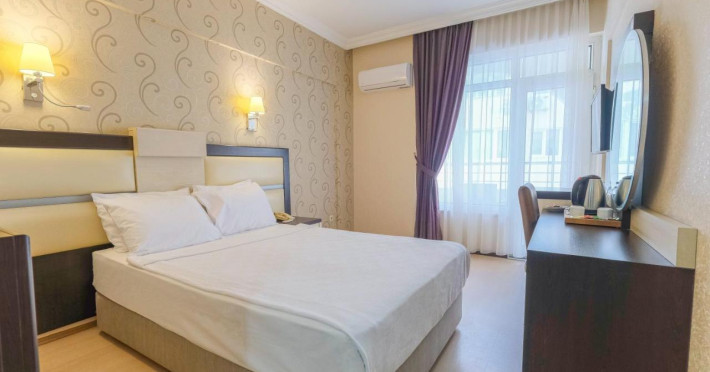 Hotelul este situat în centrul orașului Alanya, perla regiunii mediteraneene, este un loc unde vă puteți relaxa în vacanțe și călătorii comerciale, cu locația sa magnifică lângă plajă din Güllerpınarı Mahallesi. Din locația noastră, se află la 40 km de Aeroportul Gazipașa, la 135 km de Aeroportul Antalya, la 1 km de centrul orașului și la 5 minute de mers pe jos de cafenele, restaurante și locuri de divertisment. Micul dejun tip bufet, care este pregătit cu atenție pentru dvs. în fiecare zi, face un bun început al zilei și vă puteți bucura de mare și de soare pe plaja noastră chiar în fața hotelului.Localizare