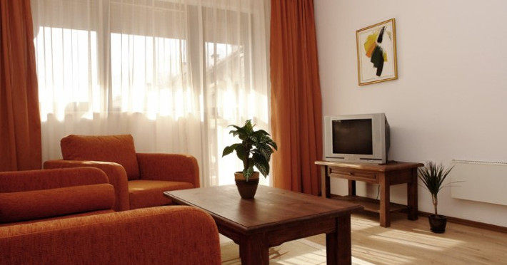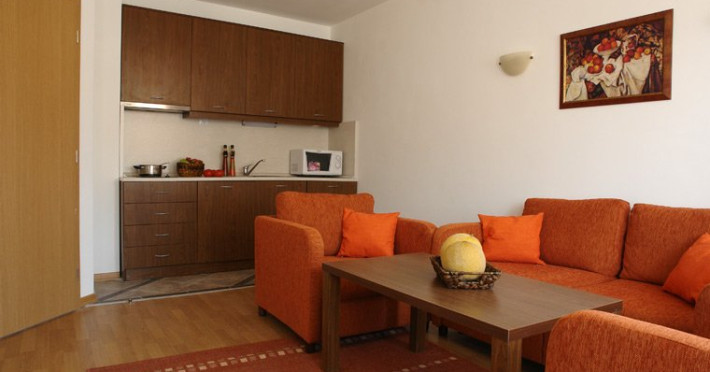 Facilitati hotel: Aparthotelul ofera apartamente cu una sau doua dormitoare,ideal pentru familii cu copii si nu numai. Apartamentele sunt cu podea cuparchet, balcon, baie, colt de bucatarie utilata, Wi Fi, depozit de skiuri. Tot aici oaspetii pot sa se relaxeze la centrul spa cu sauna, oferit gratuit sicontra cost se ofera masaj (pe baza de programare).Numarul facilitatilor la hotel cresc cu oferirea de: serviciu de inchirieri masina, transfer aeroport siretur (165 km/2.1h de aeroportul Sofia sau 185km/2.5h de aeroportul Plovdin) sispalatorie - contra cost.