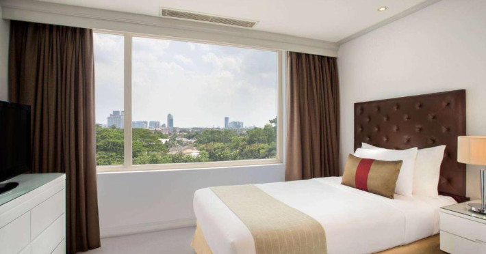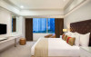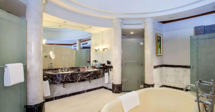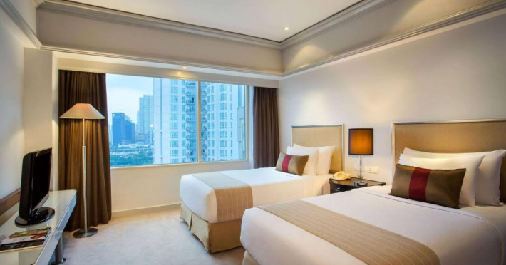 Cu vedere la oraș sau la piscina in aer liber, camerele spațioase cu aer condiționat au mobilier clasic din lemn și canapele confortabile. Sunt dotate cu TV prin cablu și seif. Băile private au dușuri cu apă caldă/rece și uscătoare de păr.