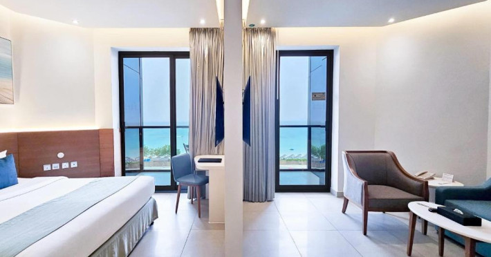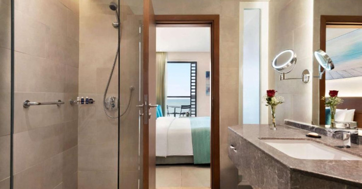 Cazare confortabilă: Wyndham Garden Ajman Corniche din Ajman oferă camere de familie cu vedere la mare, balcoane și băi private. Fiecare cameră include aer condiționat, birou și WiFi gratuit.