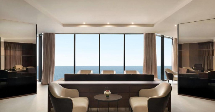 Facilități excepționale: Oaspeții se bucură de o zonă de plajă privată, facilități spa, saună, centru de fitness, terasă la soare și o piscină in aer liber deschisă tot timpul anului. Facilitățile suplimentare includ o cadă cu hidromasaj, o baie de aburi și pachete de wellness.