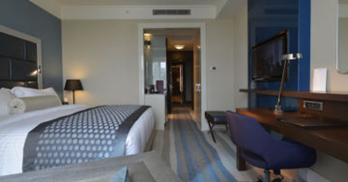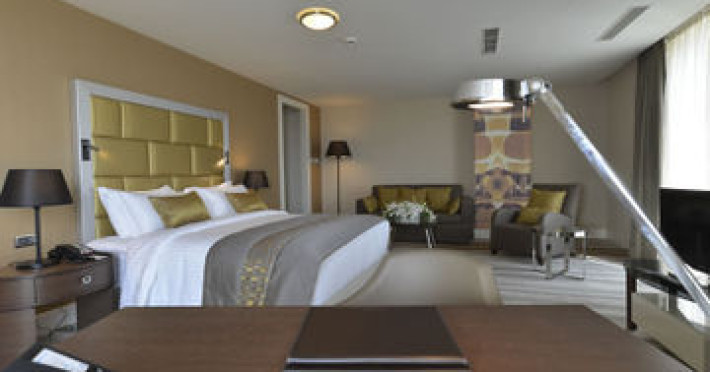 In Istanbul (BaÄcılar). Located in Istanbul (BaÄcılar), Wyndham Grand Istanbul Europe is within a 10-minute drive of Mall of Istanbul and Sinan Erdem Dome. This luxury hotel is 5.9 mi (9.5 km) from Aqua Florya Shopping and Life Center. Treat yourself to a stay in one of the 307 guestrooms, featuring fireplaces and LED televisions. Your pillowtop bed comes with premium bedding. Wired and wireless internet access is complimentary, while iPod docking stations and digital programming provide entertainment. Conveniences include phones, as well as safes and desks. Grab a bite to eat at Almina Restaurant, a restaurant which features a bar/lounge, or stay in and take advantage of the 24-hour room service. Quench your thirst with your favorite drink at the poolside bar. Buffet breakfasts are served on weekdays from 6:30 AM to 10:00 AM and on weekends from 6:30 AM to 10:30 AM for a fee. Pamper yourself with a visit to the spa, which offers massages, body treatments, and facials. You can take advantage of recreational amenities such as a health club, an indoor pool, and a hot tub. This hotel also features complimentary wireless internet access, concierge services, and an arcade/game room.Datorita dinamicitatii domeniului disponibilitatea ofertelor se modifica de la un moment la altul. De aceea ofertele sunt valabile in limita locurilor disponibile. Agentia nu este responsabila pentru eventualele neconcordante care pot aparea intre informatiile privind tarifele si alte detalii din site si informatiile primite in agentie. In aceste cazuri vor avea prioritate, intotdeauna, informatiile primite in agentie.